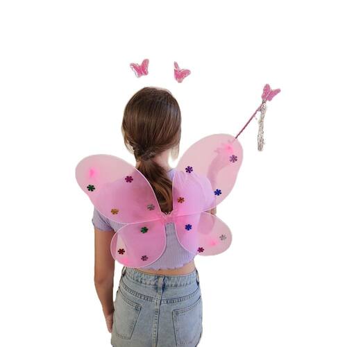 Kit Asinha De Borboleta Rosa + Tiara + Varinha