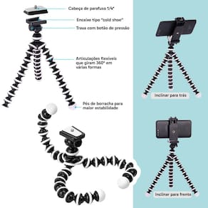 Tripé: Rotação 360° e sapata para parafuso de 1/4"