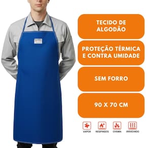 Avental de segurança confeccionado em tecido de algodão especial para proteção do tronco do usuário contra agentes térmicos.