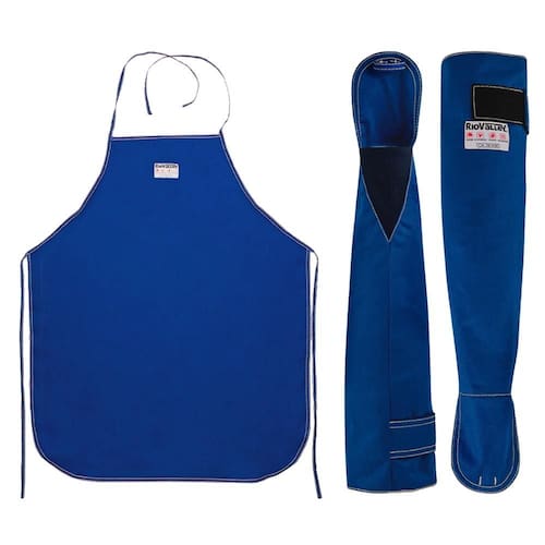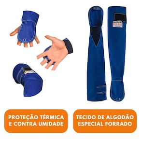 Informações Técnicas Marca: Rio Valley Modelo: Rio 181 / Rio 330 Composição: Algodão, Aramida, Silicone Medidas: 90x70 cm Medidas mangote: 50 cm CA avental: 29.046 CA mangote: 29.596