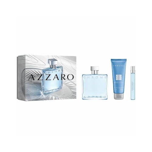 Este conjunto de perfume Azzaro contém: - Azzaro Chrome Eau de Toilette 100ml - Azzaro Chrome Hair & Body Shampoo 75ml - Azzaro Chrome Eau de Toilette tamanho de viagem 10ml. Chrome é uma fragrância de partilha, de transmissão, de frescor e azul, num universo de azul e prata como os reflexos do Mar Mediterrâneo. É a expressão olfativa do vínculo inquebrável entre pai e filho. A Eau de Toilette masculina, com seus acordes aquático-amadeirados, vem em uma caixa emblemática, acompanhada de um shampoo perfumado para cabelo e corpo e um frasco de viagem de 10 ml. Família Olfativa: Hesperides Aquático Amadeirado Nota de topo: Bergamota Nota de coração: Almíscar transparente Nota de base: Folhas de mate Borrife a Eau de Toilette a 20 cm dos seus pulsos: pescoço, colo e pulsos. Para acentuar a sensação de bem-estar e difundir a fragrância fresca e luminosa de Chrome sem exageros, use também os produtos de cuidado diário da linha: a loção pós-barba ou o desodorante em ou spray Azzaro Chrome. Marca: Não Informado