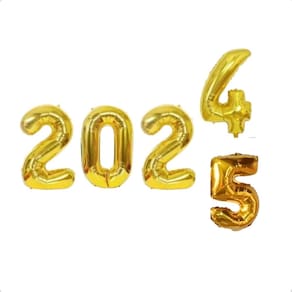 O kit contém: 5 balões metalizados que formam 2024 5 Altura de cada balão: 40cm