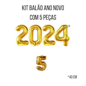 O kit contém: 5 balões metalizados que formam 2024 5 Altura de cada balão: 40cm