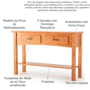 Dimensões do Aparador 2 Gavetas 100% Madeira: