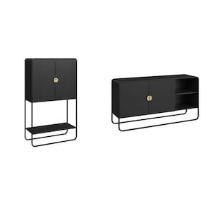 1x Balcão Bar 2 Portas 90cm Orgânico Pé Metal Luna Nero/Preto Largura: 90 cm Altura: 140 cm Peso: 28 kg Profundidade: 37,5 cm Necessita Montagem: Sim
