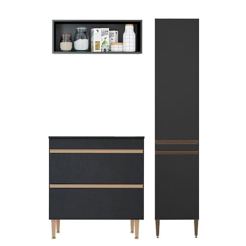 Kit Balcão Cooktop Armário Paneleiro Nicho Aéreo Menu Móveis Preto O Armarios para Cozinha Modulada Sabrina foram desenvolvidos para atender todas as suas necessidades do dia a dia com um design moderno, cheio de atitude, personalidade, funcionalidade, beleza e versatilidade. As Cozinhas preta sao a tendencia do momento e foi arquitetada com modulos uteis que vao facilitar a sua rotina diaria nos preparos dos alimentos e armazenamento dos utensilios e mantimentos, mantendo sua cozinha sempre organizada.