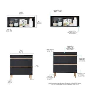A elegancia fica por conta dos puxadores em perfil e os pes na cor bronze dando um toque unico de sofisticacao.