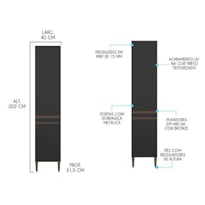 Dimensoes Paneleiro: Larg. 40cm Alt. 202cm Prof. 31,5 cm P. 28kg