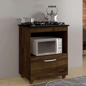 Na hora de preparar as refeições da família, é sempre bom contar com móveis que ajudem a organizar aqueles itens pertinentes à rotina. O Balcão Salvia é uma ótima forma de reforçar paneleiros e armários aéreos já que recebe utensílios gerais, alimentos secos e até frutas no inferior, além de ter apoio para receber um micro-ondas e cooktop..