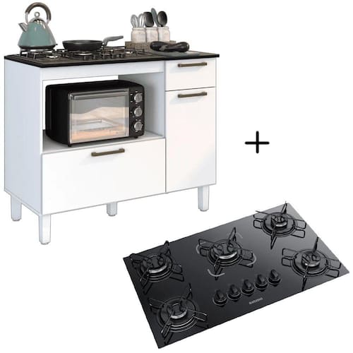 COOKTOP FOGÃO ITATIAIA ESSENCIAL 5 BOCAS BIVOLT PRETOINOVAÇÃO E ESTILO COM APROVEITAMENTO DE ESPAÇO!Com design moderno e versatilidade, o Cooktop Essencial é uma tendência para a decoração da sua cozinha e vai bem em qualquer espaço. Além de ser sinônimo de beleza, também é resistente e fácil de limpar.POTÊNCIA E PRATICIDADE Serigrafia que sinaliza maior potência dos queimadores.SEGURANÇA E CONFORTO Grades individuais e esmaltadas. Segurança e estabilidade para suas panelas, facilidade de limpeza.ACENDIMENTO FÁCIL, RÁPIDOE SEGURO Acendimento Superautomático.FACILIDADE NA LIMPEZA Manípulos removíveis com sinalização de posição.POTÊNCIA E AGILIDADE Queimadores de alumínio que agilizam o cozimento.BELEZA, RESISTÊNCIA E PRATICIDADE Mesa de vidro temperado com bordas infinitas, proporcionando a melhor limpeza e aumentando o espaço útil do seu fogão.Os objetos que ambientam as imagens não acompanham o produto.Altura 16cmLargura 73cmProfundidade 45cmPeso 9.52kgSituação do Produto Enviado: Novo na caixaTripla chama: NãoQuantidade de trempes: 5Linha: EssencialBALCAO COOKTOP MASTER 2P 1G PARA COOKTOP DE 5 BOCASSua cozinha merece um design inovador e seguro,o balcao possui duas portas com dobradiças metálicas, sendo uma delas de bascular com articulador, uma gaveta com corrediça metálica, espaço para fogão cooktop de 5 bocas, e espaço para forno elético, cinco pés com regulagem de altura, puxadores de plastico, profundidade 523mm, acabamento UV/Verniz, estrutura em MDP 15mmDimensoes do produto:Altura:90,8 cmlargura 110,5 cmComprimento:52,3 cmEspaço para CooktopLargura: 64cmComprimento:37 cmEspaço para forno eletricoAltura:35,5cmLargura:72 cmInformações do Produto:Acabamento: UV VernizTipo de acabamento: Fosco/BrilhoQtde de Portas: 02Qtde de gavetas: 01Qtde de prateleiras: 02Pés Plasticos: 5Tipo de puxador: Plastico Tipo de dobradiça: metalica 026Tipo de corrediça: metalicasSistema de montagem:Parafusos auto atarraxantes, cola, cavilhasLimpar com flanela ou pano macio seco, não utilizar produtos abrasivos, desengordurantes, álcool ou qualquer outro produto químico. Não expor o produto diretamente à luz solar e à umidadeConteúdo da embalagem: 01 COOKTOP FOGÃO ITATIAIA 5 BOCAS 01 BALCAO COOKTOP MASTER*Garantia: 03 meses contra defeitos de fabricação.*Objetos de decoração das fotos não estão inclusos.*As cores podem variar conforme monitor/smartphone utilizado para a visualização do anúncio.*Não oferecemos serviço de montagem dos produtos, porém, acompanham esquema de montagem na embalagem; Recomendamos que o serviço seja feito por um profissional.