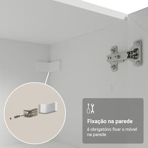 A cristaleira não acompanha pés nem kit para suspender na parede. Deve ser instalada sobre o balcão e fixada na parede.
