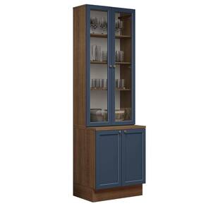O acabamento de alta resistência da estrutura é em tom amadeirado Rustic, das frentes em Azul e possui uma textura suave ao toque. O destaque fica por conta do detalhe chanfrado das frentes, que forma molduras elegantes e dá profundidade ao design, refletindo o estilo americano com um toque moderno. Outro diferencial está nos puxadores ponto em ouro envelhecido, feitos com metal resistente, trazem personalidade e um charme único.