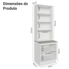 - 60 cm de profundidade no balcão e 31 cm na cristaleira