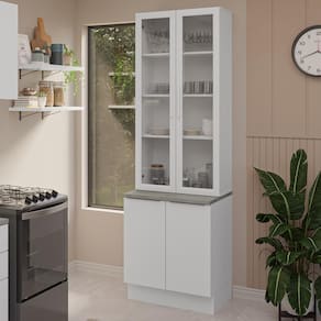 Muito elegante, a cristaleira possui duas portas de vidro e amplo espaço interno para acomodar louças, copos e outros itens de forma organizada.