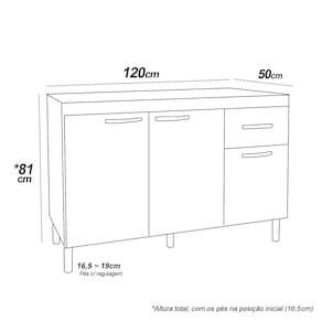 - Compatível com pia de 1,20m (não acompanha pia/tampo)