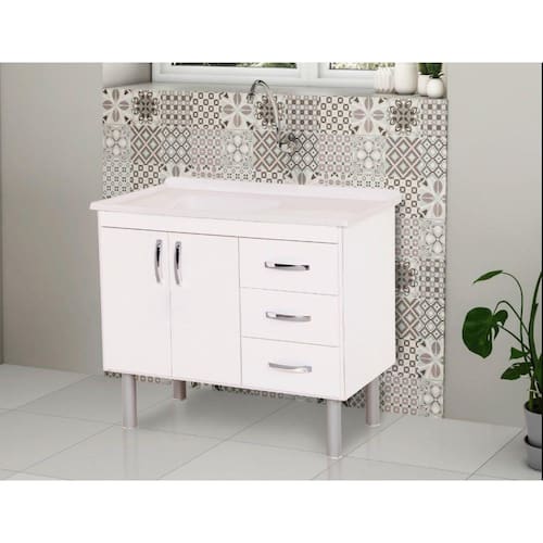 Kit Balcão E Pia Tóquio 1.20 Rorato Branco/Travertino - O armário Tóquio é feito para pias de 1,20m.