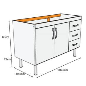 Dimensões do produto Balcão (A x L x P): 60cm x 116,2cm x 49,5cm