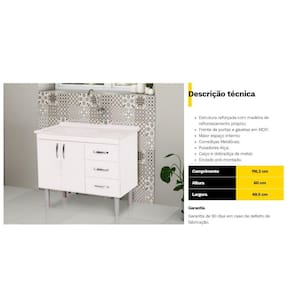 Dimensões do produto Pia (A x L x P): 15cm x 55cm x 120cm