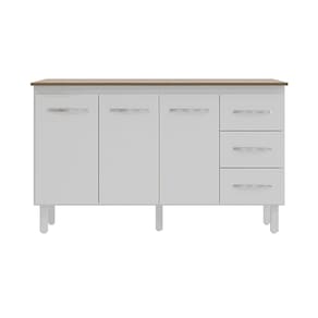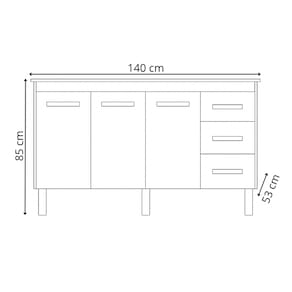 O Balcão possui 83,5 cm de altura com os pés e 67 cm sem os pés, 138 cm de largura e 50 cm de profundidade, sendo ideal para ambientes de diferentes tamanhos.