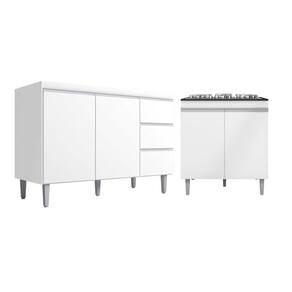 Kit Balcão Gabinete Para Pia Andreia 100cm C/ Balcão Cooktop 4 Ou 5 Bocas - Ajl Móveis Cor Branco