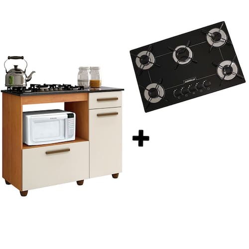 Kit Balcão para Cooktop Nature com Cooktop 5 Bocas Preto