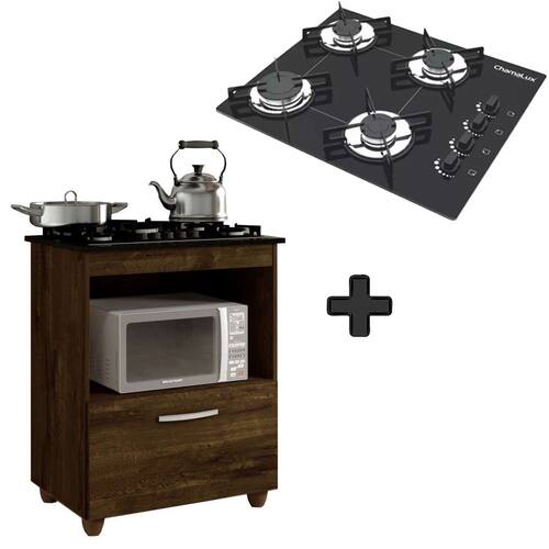 FOGÃO COOKTOP CHEF 4 BOCAS BIVOLT VIDRO TEMPERADO PRETO CHAMALUX Inovação e estilo com aproveitamento de espaço! Com design moderno e versatilidade, o Cooktop 5 bocas Chef é uma tendência para a decoração da sua cozinha, pois vai bem em qualquer espaço. Além de ser sinônimo de beleza, também é resistente e fácil de limpar.Mais segurança e facilidade de limpeza, sofisticação e requinte para a cozinha.Dimensões do produtoAltura: 10 CM Largura: 46 CMComprimento: 55 CMCor: PretoDimensões do EncaixeLargura: 36,5cmComprimento: 50 cmPrincipais características:Classificação AQueimadores esmaltados 04 queimadores semi rapido 1750wGrades esmaltadas com sistemas de encaixe, Mesa de vidro temperadoAcendimento inteligente Botões de facil manuseio Tensao BivoltGrades robustas esmaltadasDiscos esmaltadosProduto com design arrojadoCuidados: Evite a instalação e manuseio próximo do alcance de crianças.Evite a instalação próximo de geladeiras e freezers.Certifique-se de que a tomada está segura e apta para ser utilizada.BALCÃO PARA COOKTOP 04 BOCAS 1 PORTA BASCULANTE SALVIA KAIKIOtimize o espaço da sua cozinha utilizando o Balcão para Cooktop Salvia, pois ele conta com muito espaço para organizar os seus utensílios mais utilizados durante o dia. Dê um toque especial em sua cozinha com esse versátil e charmoso Balcão. Altura: 92cm Largura: 74cm Profundidade: 49cmMaterial Principal: MDP Acabamento: Pintura UV Escala de Brilho: Fosco Possui Portas: 1 Tipo de Porta: Basculante Material do Puxador: MDFPossui Prateleiras: 1 Possui Gavetas: Não Tipo de Corrediça: Não possui Possui Pés: 4 Espaço para cooktop:55,1 cm de largura 38cm de profundidade Cooktop incluso: Não Espaço para microondas:37cm de Altura e 67cm de largura Necessita Montagem: Sim Recomendações de Uso, Manutenção e Limpeza: Limpar com flanela limpa e seca.Não usar produtos abrasivos.Conteudo da embalagem: 01 cooktop 4 bocas.01 balcãoGarantia de 12 meses contra defeitos de fabricação.*Imagem meramente Ilustrativa.*Não nos responsabilizamos pela instalação deste produto.*Objetos de decoração das fotos nao estão inclusos.