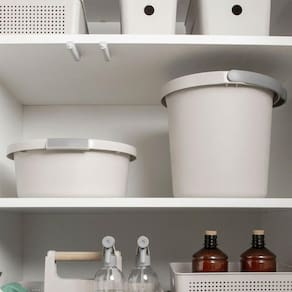 Kit Balde e Bacia de Limpeza Flow Bege 5L e 8,5L com Gradação de Litros e Bico Direcionador Ou.