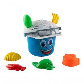 Contém: 1 balde com alça, 1 pá, 1 rastel, 1 peneira e 4 bichos diversos.