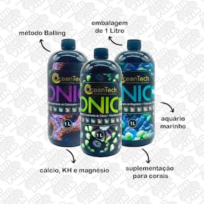 A linha ionic da oceantech inspira-se no método balling que consiste em um sistema de suplementação inteligente para corais, adicionando as substâncias necessárias para o acréscimo de cálcio, kh/alcalinidade e magnésio, bem como elementos-traço essenciais, sem interferir no equilíbrio iônico. A inserção dessas substâncias nos passos corretos é um procedimento-chave para o sucesso dessa suplementação.