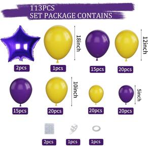 Tema de basquete: apresenta balões amarelos e roxos vibrantes, com um divertido tema de basquete que o torna perfeito para eventos esportivos, festas de aniversário ou celebrações temáticas de basquete. Materiais duráveis: fabricados com materiais de látex e alumínio de alta qualidade, garantindo balões duradouros com um acabamento brilhante e brilhante para eventos internos e externos. Ideal para aniversários infantis: perfeito para jovens entusiastas do basquete, este kit cria uma atmosfera empolgante e divertida, perfeita para oportunidades fotográficas e decoração de festas. Configuração personalizável: inclui balões em vários tamanhos (5 a 18 polegadas), permitindo que você crie facilmente um arco, guirlanda ou peça central de balão personalizada que se adapte ao seu espaço e estilo. Kit de festa completo: tudo o que você precisa para criar um cenário de festa deslumbrante está incluído, tornando a decoração de sua celebração com tema de basquete rápida e fácil.