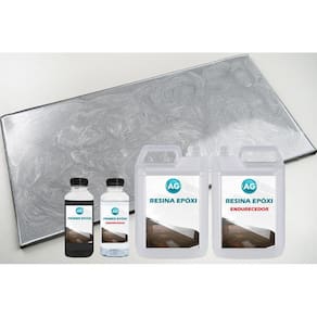 A Resina Epóxi de acabamento é composta por uma Resina Epóxi AG e um Endurecedor Epóxi AG. Misture 200g da Resina com 100g do Endurecedor até obter uma mistura homogênea. Essa resina será utilizada como o acabamento final, proporcionando uma proteção duradoura e um acabamento estético.