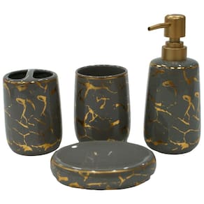 Kit Bancada de Banheiro Cerâmica 4 Peças Cinza - Quanhe