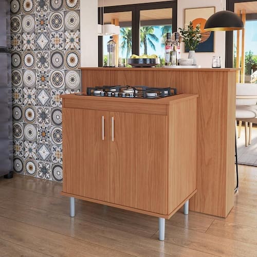 Ótima Capacidade de Armazenamento: As portas espaçosas permitem organizar utensílios, panelas e mantimentos de forma eficiente.