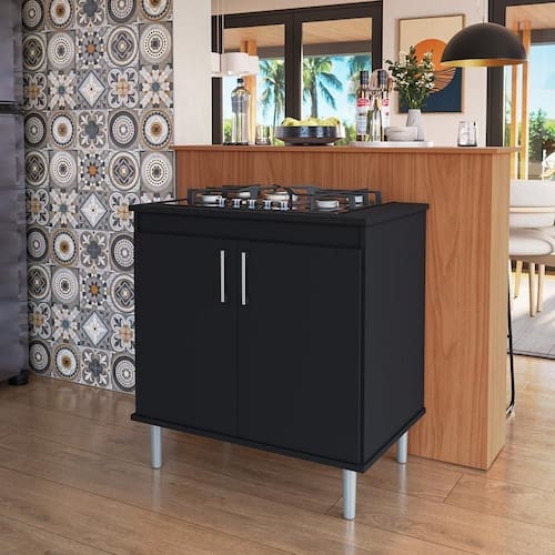 Requer montagem: sim | Inclui manual de montagem: Sim | Tipo de movel de cozinha: Balcao | Material do corpo: MDF/MDP | Cor: Preto
