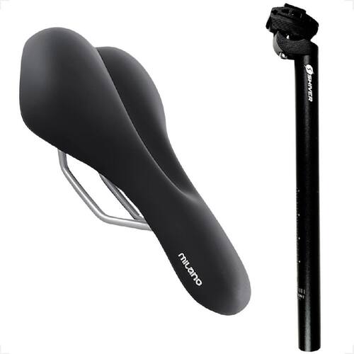 SELIM BICICLETA BIKE NEW MILANO GEL COM BLISTER + CANOTE 27.2X350MM ALUMINIO COM CARRINHO
