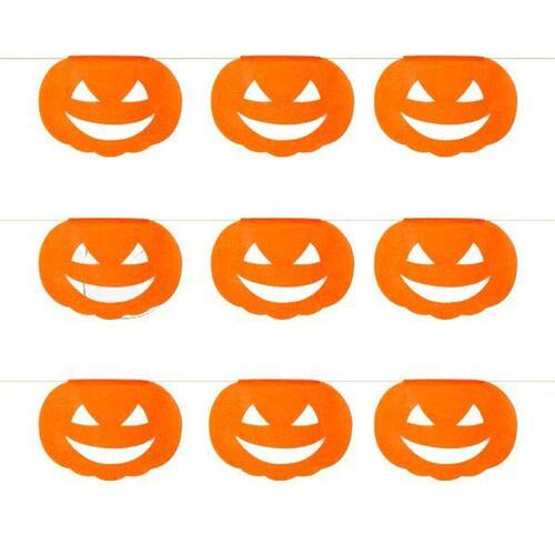 BOOOOO Se você está procurando uma opção de decoração de Halloween prática e criativa, o Kit de Bandeirinha Abóbora Decorativa que oferecemos é perfeito para vocêEssas Bandeirinhas foram feitas de Papel Seda, com muita criatividade e carinho, possuindo um total de 9 Abóboras em cada pacote, suspensas por um barbante que tem o comprimento de 5 metros. O melhor é que são 10 pacotes que vêm no kit, ou seja, você terá um total de 50 metros de bandeirinhas para decorar o seu espaçoAdquira já o seu Kit de Bandeirinhas Decorativas e faça uma decoração incrivelmente assustadora de Halloween com muita facilidade e economia