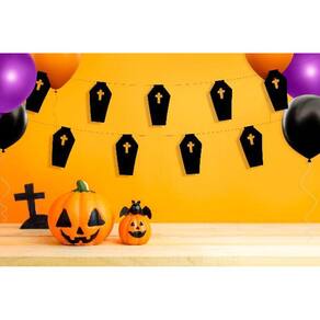 Kit Bandeirinha Halloween Caixão Preto 10 Pacotes Com 5 Metros BOOOOOO Se você está procurando uma opção de decoração de Halloween prática e criativa, o Kit de Bandeirinha Decorativa Caixão Preto que oferecemos é perfeito para vocêEssas Bandeirinhas foram feitas de Papel Seda, com muita criatividade e carinho, possuindo um total de 9 bandeirinhas em cada pacote, suspensas por um barbante que tem o comprimento de 5 metros. O melhor é que são 10 pacotes que vêm no kit, ou seja, você terá um total de 50 metros de bandeirinhas para decorar o seu espaçoAdquira já o seu Kit de Bandeirinhas Decorativas e faça uma decoração incrivelmente assustadora de Halloween com muita facilidade e economia