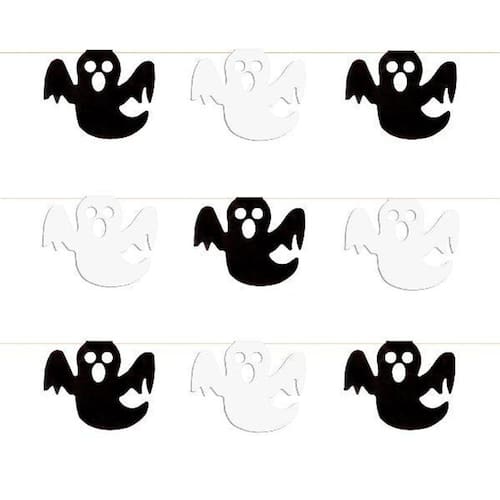 Kit Bandeirinha Halloween Fantasma Brancopreto 10 Pacotes Com 5 Metros BOOOOOO Se você está procurando uma opção de decoração de Halloween prática e criativa, o Kit de Bandeirinha Decorativa Fantasma BrancoPreto que oferecemos é perfeito para vocêEssas Bandeirinhas foram feitas de Papel Seda, com muita criatividade e carinho, possuindo um total de 9 Fantasminhas em cada pacote, suspensas por um barbante que tem o comprimento de 5 metros. O melhor é que são 10 pacotes que vêm no kit, ou seja, você terá um total de 50 metros de bandeirinhas para decorar o seu espaçoAdquira já o seu Kit de Bandeirinhas Decorativas e faça uma decoração incrivelmente assustadora de Halloween com muita facilidade e economia