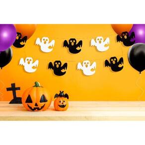 Kit Bandeirinha Halloween Fantasma Brancopreto 10 Pacotes Com 5 Metros BOOOOOO Se você está procurando uma opção de decoração de Halloween prática e criativa, o Kit de Bandeirinha Decorativa Fantasma BrancoPreto que oferecemos é perfeito para vocêEssas Bandeirinhas foram feitas de Papel Seda, com muita criatividade e carinho, possuindo um total de 9 Fantasminhas em cada pacote, suspensas por um barbante que tem o comprimento de 5 metros. O melhor é que são 10 pacotes que vêm no kit, ou seja, você terá um total de 50 metros de bandeirinhas para decorar o seu espaçoAdquira já o seu Kit de Bandeirinhas Decorativas e faça uma decoração incrivelmente assustadora de Halloween com muita facilidade e economia