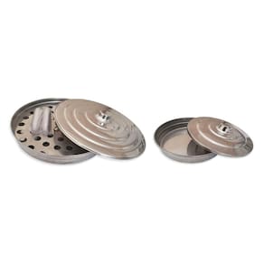 Kit Bandejas para Santa Ceia (Para cálices e pães)Kit contém:01 - Bandeja de alumínio (grande) com 56 cálices - prata - Com tampa- Medida 35cm de diâmetro01 - Bandeja de alumínio (pequena) para pão - prata- Com tampa- Medida 17cm de diâmetro Marca: Lk Magazine