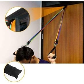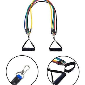 Kit tubing elástico 11 peças musculação treinamento funcional + mini band extra forte O pacote inclui: 1 elástico leve 1 elástico médio 1 elástico forte 1 elástico super forte 1 elástico extra forte 2 alças pegadores revestidos de espuma 2 tiras de tornozelos 1 ancora para travar na porta 1 bolsa de transporte em nylon Elásticos de duplo látex, é mais resistente e durabilidade Com este kit você faz praticamente todos exercícios que se faz numa academia, ótimo para iniciantes ou para suplementar os trabalhos já feitos em academia de pessoas com mais experiência. Alguns benefícios dos exercícios feitos com elásticos: A execução dos movimentos exige um maior reagrupamento de fibras musculares, o que resulta na queima de boa quantidade de calorias. Como todo exercício , auxilia na melhora do sistema circulatório, reduz os níveis de stress, melhora o sono e evita a obesidade. Gera fortalecimento muscular, tanto hipertrofia quanto maior resistência, resultando em consistentes melhoras no condicionamento físico e em maior resistência contra lesões. Os praticantes têm uma significativa melhora na coordenação motora, na mobilidade e apresentam maior flexibilidade. Pode ser utilizado para tratamentos físicos pós-cirúrgicos. Especificações: Elásticos feitos de borracha profissional látex de alta qualidade e resistência Cada elástico tem 1,20 mt de comprimento Facilmente você pode criar mais de 30 diferentes níveis de resistência, anexando 1, 2, 3, 4 ou 5 elásticos de uma vez. Perfeito para musculação, yoga e pilates etc