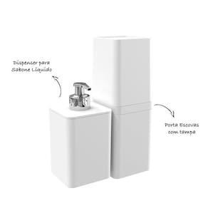 - Itens Inclusos: Dispenser para sabonete e Porta escova com tampa