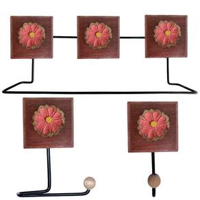 Kit Banheiro 3 Peças Toalheiro Cabideiro Porta Papel Papel Com Flores Coloridas Cor Rosa