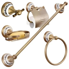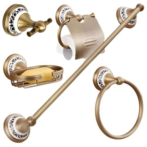 Kit Banheiro 5 Peças Bronze Porcelana Acessórios Retrô Luxo