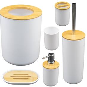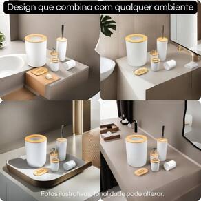 O Kit de Banheiro de 6 Peças Nápoles oferece uma solução completa e funcional para aprimorar sua experiência diária de cuidados pessoais. Com uma lixeira prática, escova sanitária eficiente, saboneteira líquida de fácil uso, porta sabonete conveniente, copo multiuso e porta escova, este conjunto é projetado para simplificar sua rotina de higiene. Além de proporcionar organização, a combinação de plástico durável e madeira de bambu confere um design elegante ao seu banheiro. Experimente a praticidade de ter todos os acessórios essenciais em um só conjunto, proporcionando um ambiente de banho mais eficiente e esteticamente agradável. Transforme seu banheiro em um espaço funcional e sofisticado com este kit completo e versátil.