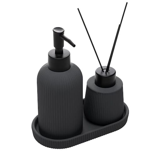 Kit banheiro cerâmica 3 peças sketch dispenser pia bandeja O kit de banheiro pia 3 peças com acabamento e detalhes em textura soft touch, este conjunto combina estilo contemporâneo com funcionalidade para o seu banheiro. Fabricado em cerâmica premium, garante durabilidade e resistência, mantendo-se bonito por muito tempo. Com capacidade de 350ml, o dispenser tem a capacidade adequada para o uso diário, mantém seu sabonete sempre acessível. Seu infuso tem capacidade de 110ml e acompanha 5 palitos para aromatizar ambientes. Características do produto Material: cerâmica Dimensões da caixa: 16 x 10 x 14 Medida: dispenser: 18cm x 7 infuso: 9cm x 7cm bandeja:17 x 2cm Peso: 520g Capacidade: 350ml Cor: cinza Cinza Marca: wolff Imagens ilustrativas e dimensões aproximadas, os demais produtos não Acompanham o item. As cores podem variar de acordo com a tela do celular ou computador. Itens inclusos: 1 dispenser cerâmica 1 infuso 1 bandeja Limpeza e conservação Não usar abrasivos, limpar com detergente neutro. Marca: Não Informado