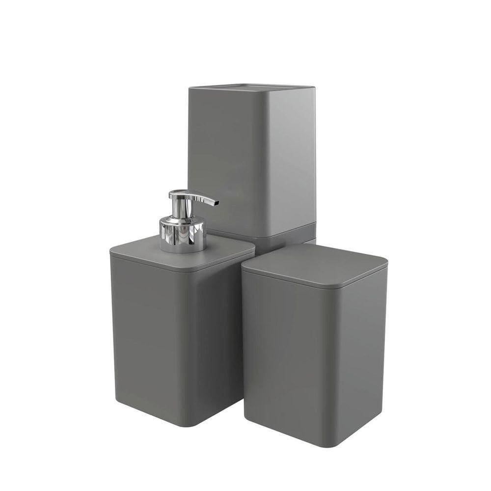 Kit Acessório Banheiro Porta Escova Sabão - Cinza