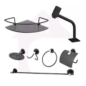 Kit banheiro completo/1 torneira bancada 1060 preto + 1 porta shampoo canto preto + 1 kit acessorios preto