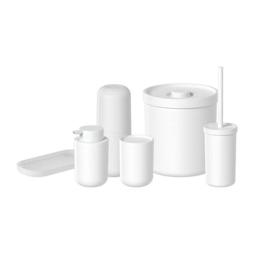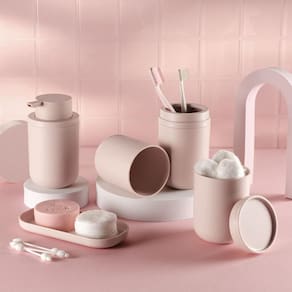 Com design clean, elegante e bordas arredondadas, a linha Bold mantém seu banheiro organizado, higienizada e deixa os objetos à mão. A linha Bold é perfeita para complementar seu banheiro com estilo e praticidade. Produtos fabricados em material resistente. (Plástico PS).INFORMAÇÕES TÉCNICASDimensões: LxAxP: 8x21x8 cm.Material: PP (Polipropileno) + PS (Poliestireno)CUIDADOSNão vai à lava-louças, sugere-se higienizar com sabão neutro e esponja macia, evitando materiais abrasivos na limpeza.CONTEÚDO DA EMBALAGEM 1 Porta Escova de Dente Bold1 Porta Sabonete Líquido Bold1 Porta Algodão e Cotonete Bold1 Lixeira Bold 6 Litros1 Escova Sanitária Bold1 Bandeja Dual