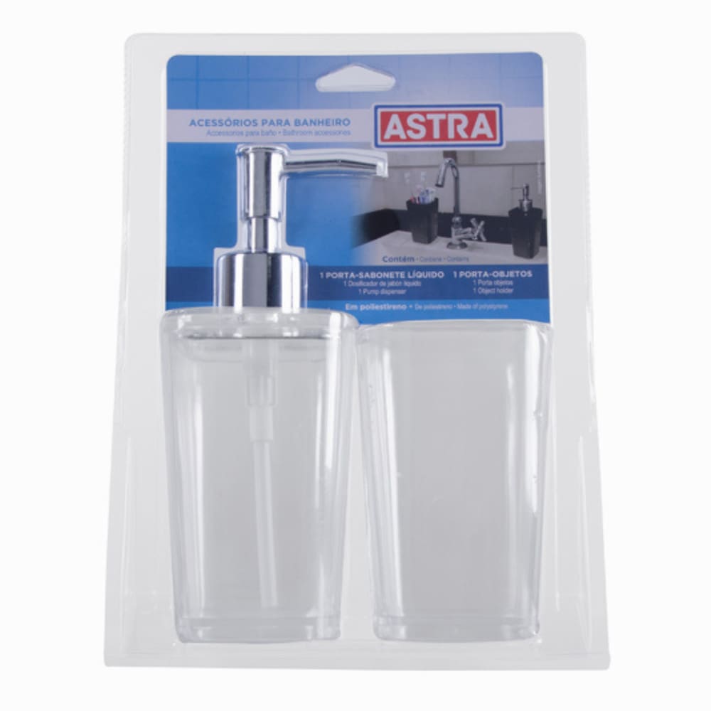 Kit Banheiro Porta Sabonet Liquid Porta Objeto Cristal Astra